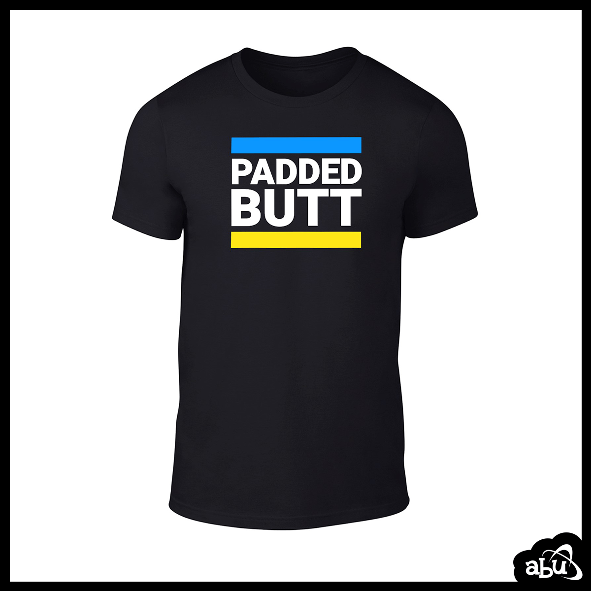 popular ‘Padded Butt’ socks the team have added a t-shirt for the coolest crinklers, the bravest babs! With their bright yellow and blue stripes and ‘PADDED BUTT’ across your chest, no one will be in any doubt about what your think the best underwear around is. Diapers of course!